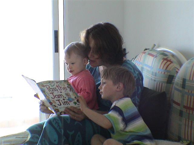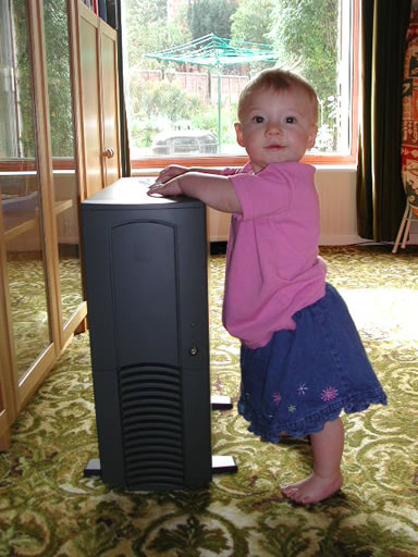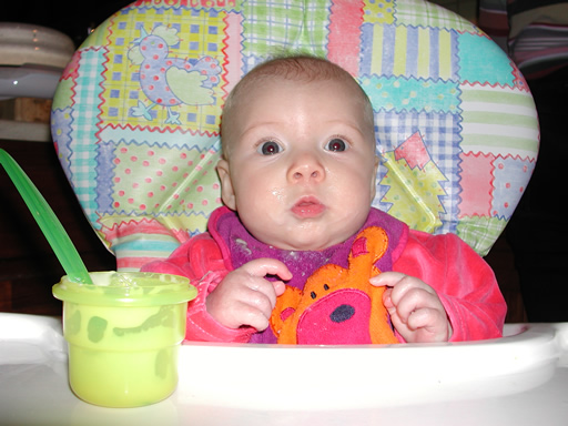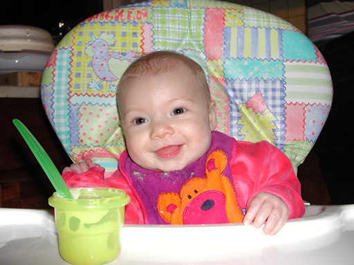 high chair. Much easier to feed (but no less messy!) 08-01-02 |