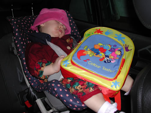 Even asleep in the car, Aimee cannot